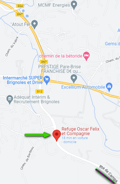 Notre adresse : Route de Camps la Source BRIGNOLES (83170) à 200 mètres après Intermarché que vous laissez sur votre gauche en prenant la Route de camps la source